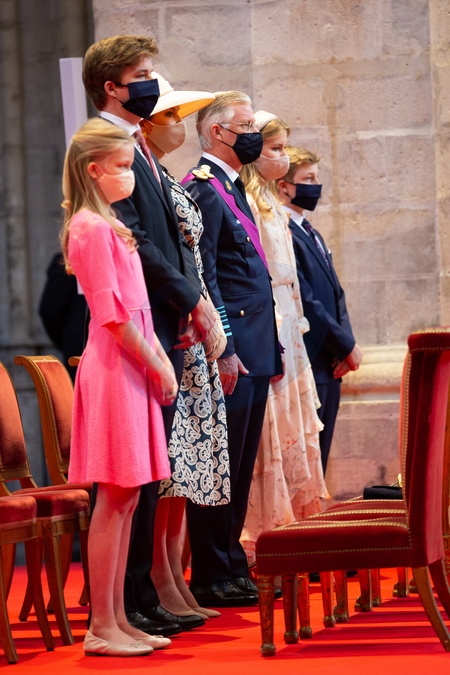 Belgijska rodzina krolewska w maseczkach podczas mszy