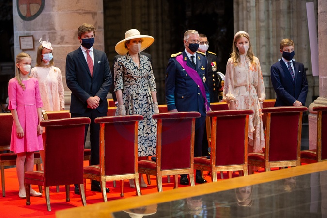 Belgijska rodzina krolewska w maseczkach podczas mszy