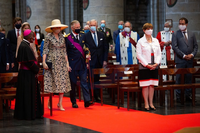 Belgijska rodzina krolewska w maseczkach podczas mszy