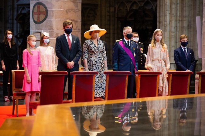 Belgijska rodzina krolewska w maseczkach podczas mszy