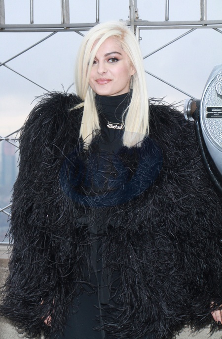 Bebe Rexha w czarnym futerku na The Empire State Building