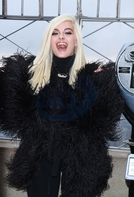 Bebe Rexha w czarnym futerku na The Empire State Building