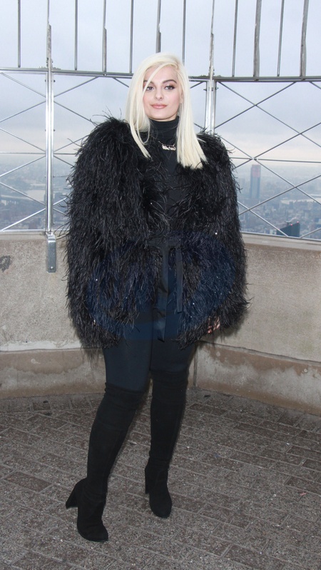 Bebe Rexha w czarnym futerku na The Empire State Building