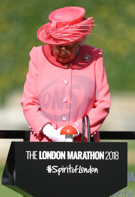 Krolowa Elzbieta II na rozowo podczas Londynskiego Maratonu
