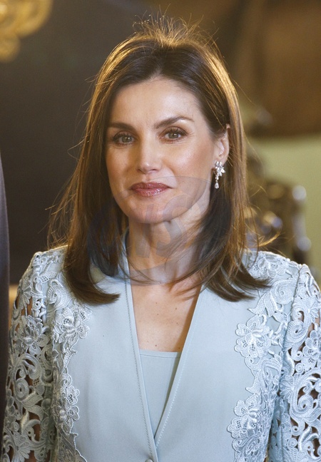 Krolowa Letizia w blekitnym plaszczyku z koronkowymi rekawami