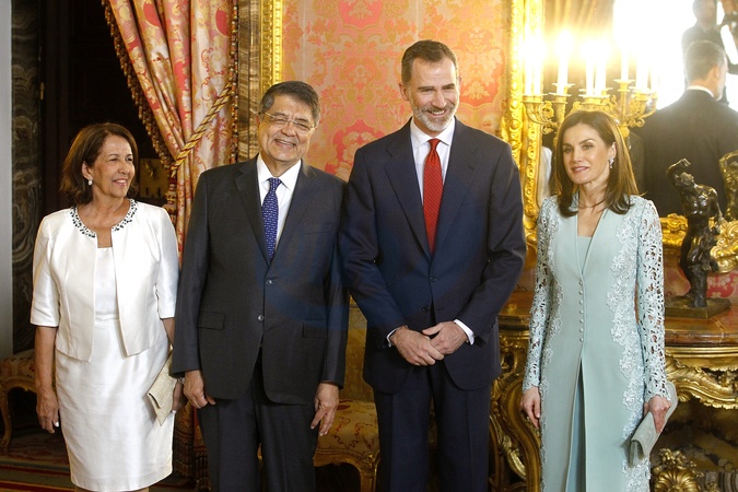 Krolowa Letizia, Krol Filip, Sergio Ramirez z zona Gertrudis Guerrero