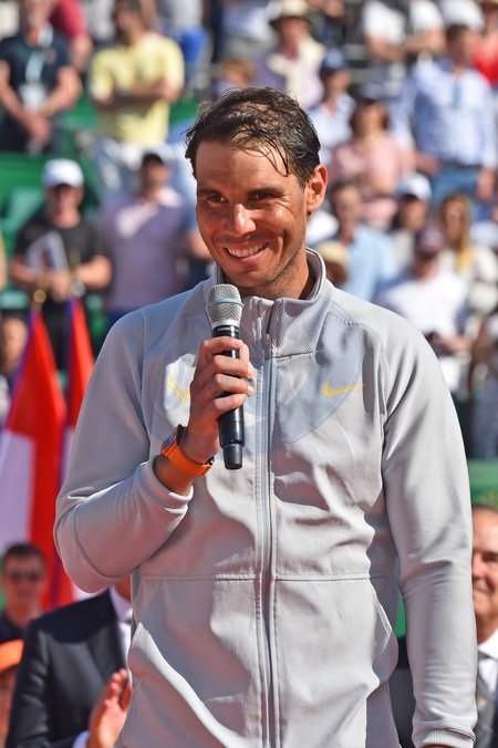 Ksiezna Charlene i ksiaze Albert pozuja z Rafaelem Nadal