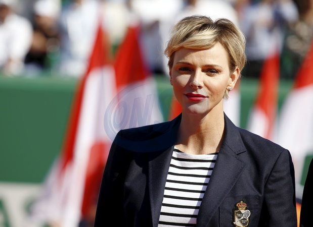 Ksiezna Charlene i ksiaze Albert pozuja z Rafaelem Nadal