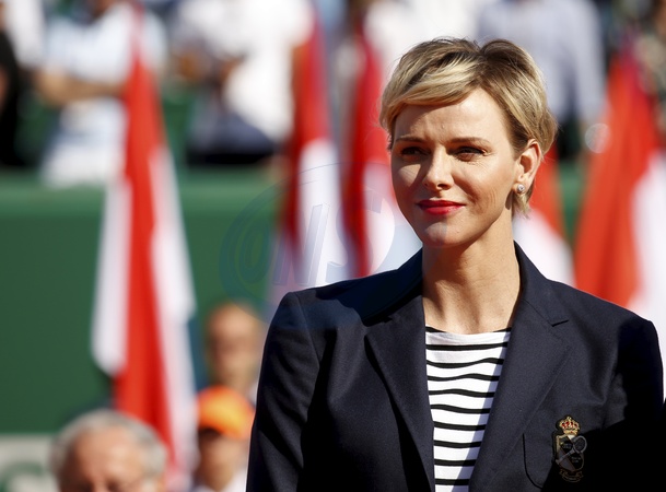 Ksiezna Charlene i ksiaze Albert pozuja z Rafaelem Nadal