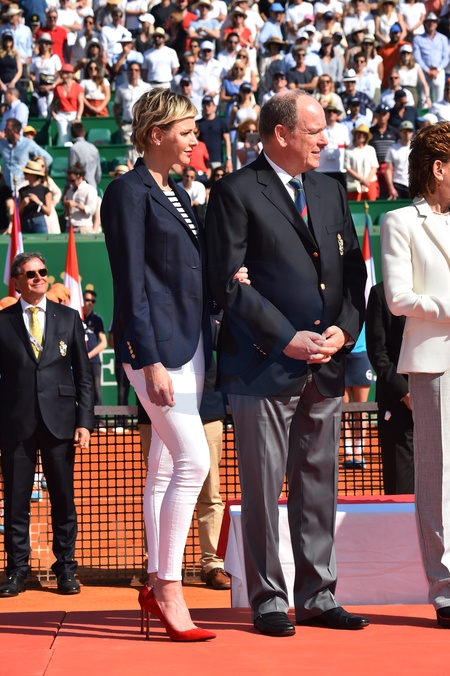 Ksiezna Charlene i ksiaze Albert pozuja z Rafaelem Nadal