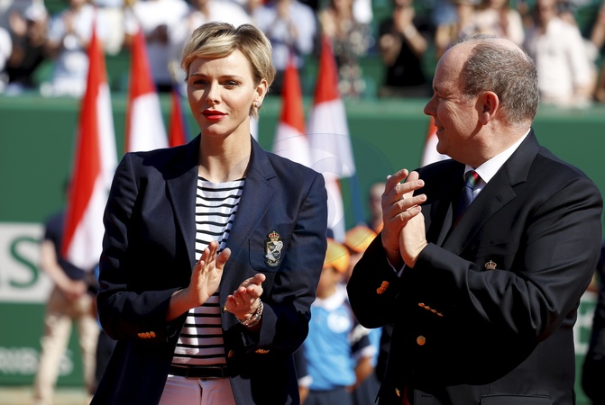 Ksiezna Charlene i ksiaze Albert pozuja z Rafaelem Nadal