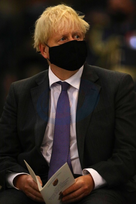 Boris Johnson w maseczce podczas obchodow 80. rocznicy Battle of Britain