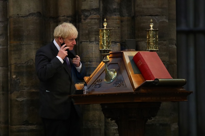 Boris Johnson w maseczce podczas obchodow 80. rocznicy Battle of Britain