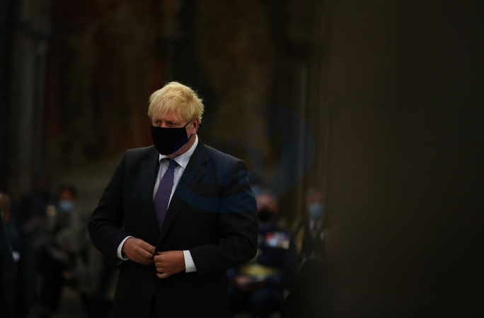 Boris Johnson w maseczce podczas obchodow 80. rocznicy Battle of Britain