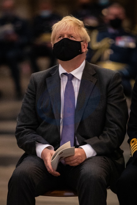 Boris Johnson w maseczce podczas obchodow 80. rocznicy Battle of Britain
