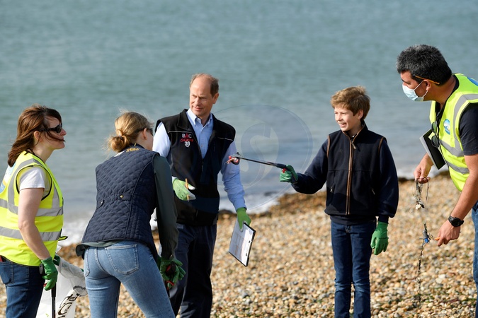 Ksiaze Edward z zona i z dziecmi sprzata plaze