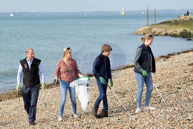 Ksiaze Edward z zona i z dziecmi sprzata plaze