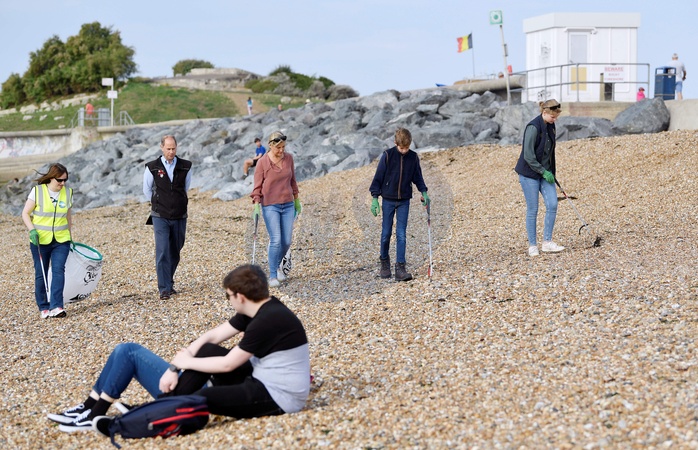 Ksiaze Edward z zona i z dziecmi sprzata plaze