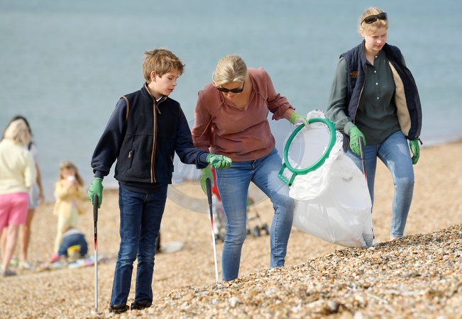 Ksiaze Edward z zona i z dziecmi sprzata plaze