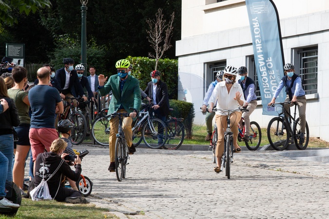 Krolowa Matylda i krol Filip z dziecmi na rowerach