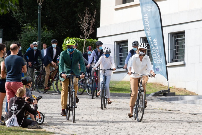 Krolowa Matylda i krol Filip z dziecmi na rowerach