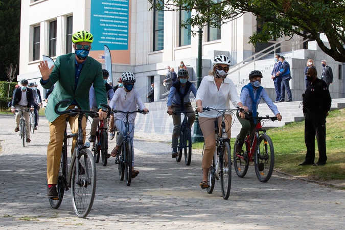 Krolowa Matylda i krol Filip z dziecmi na rowerach
