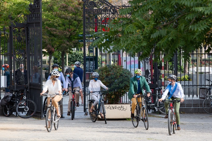 Krolowa Matylda i krol Filip z dziecmi na rowerach