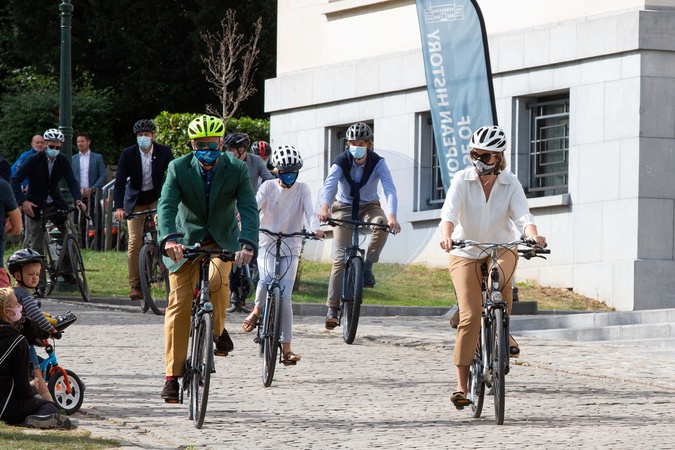 Krolowa Matylda i krol Filip z dziecmi na rowerach