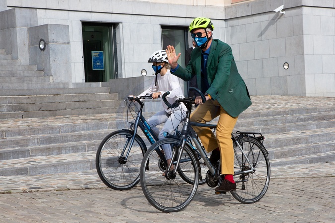 Krolowa Matylda i krol Filip z dziecmi na rowerach