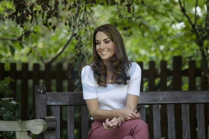 Ksiezna Kate w rozowych spodniach i bialej koszulce