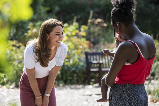 Ksiezna Kate w rozowych spodniach i bialej koszulce