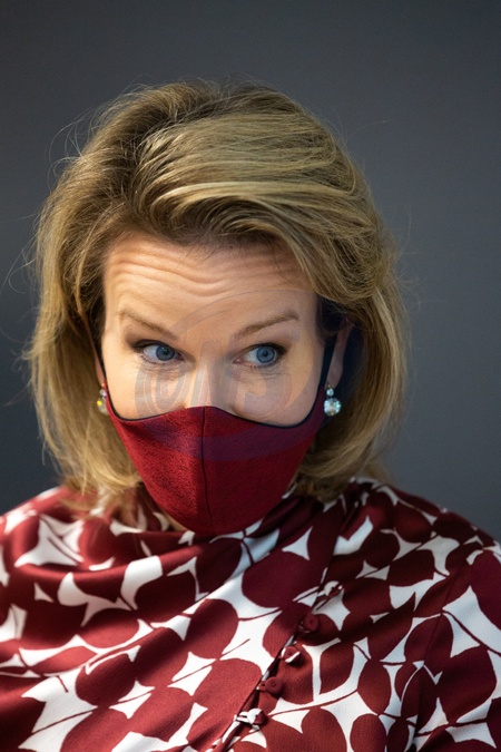krolowa Matylda rozmawia z wolontariuszką, uczestniczaca w badaniu szczepionki przeciwko koronawirusowi