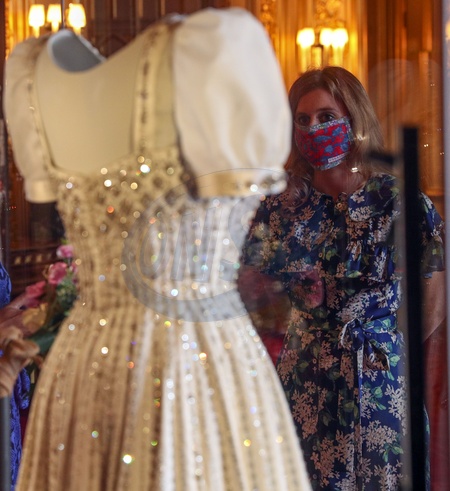 Ksiezniczka Beatrice oglada swoja suknie slubna na wystawie