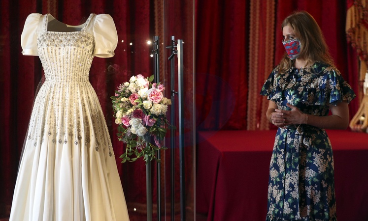Ksiezniczka Beatrice oglada swoja suknie slubna na wystawie