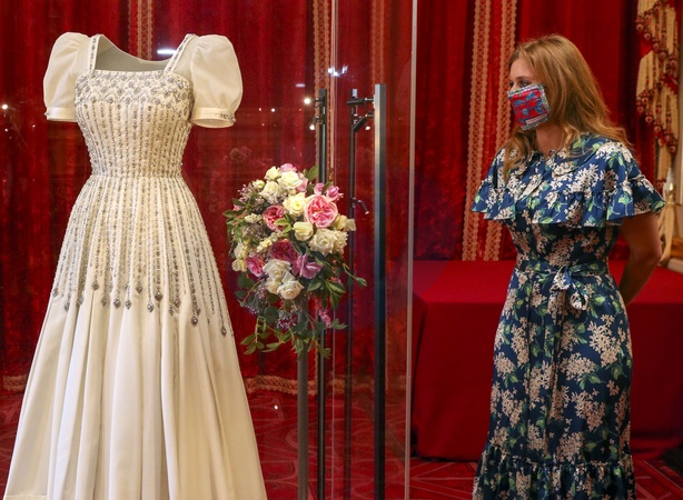Ksiezniczka Beatrice oglada swoja suknie slubna na wystawie