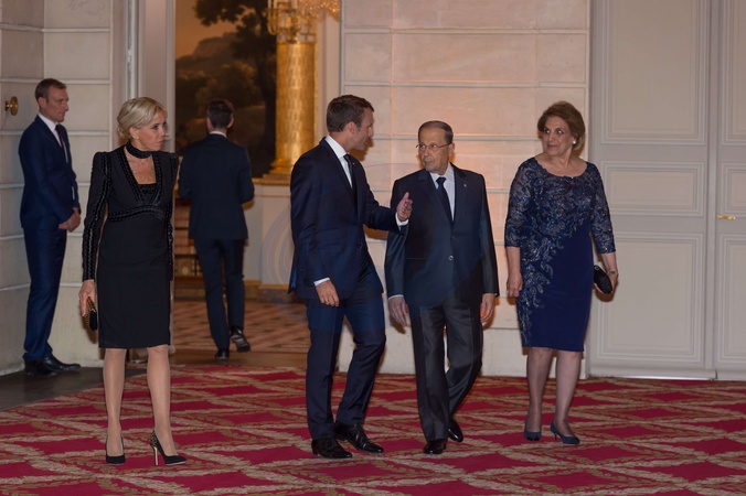 Michel Aoun, Nadia Aoun, Emmanuel Macron, Brigitte Macron