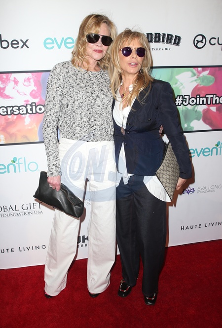 Melanie Griffith i Rosanna Arquette, obie na imprezie w ciemnych okularach