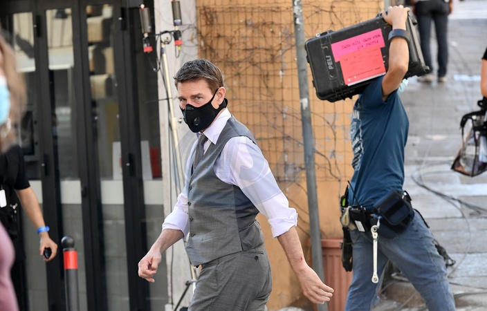 Tom Cruise w maseczce na planie ' Mission Impossible 7'