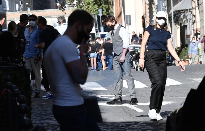 Tom Cruise w maseczce na planie ' Mission Impossible 7'