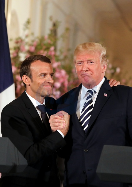Macron i Trump - wspolna konferencja i przyjacielskie gesty