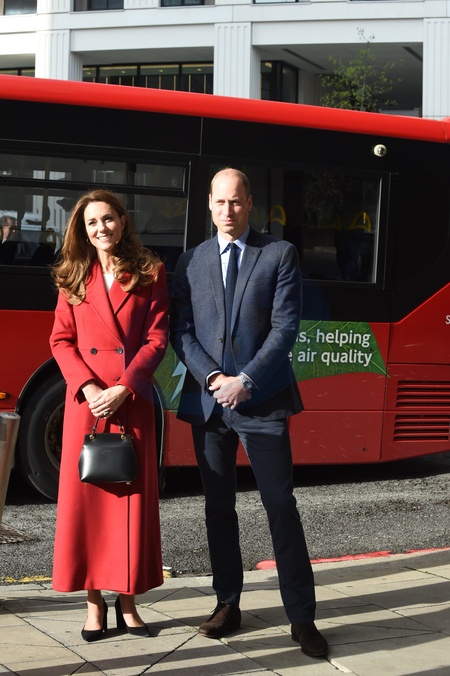 Ksiezna Kate w czerwonym plaszczu i ksiaze William podczas oficjalnego wyjscia