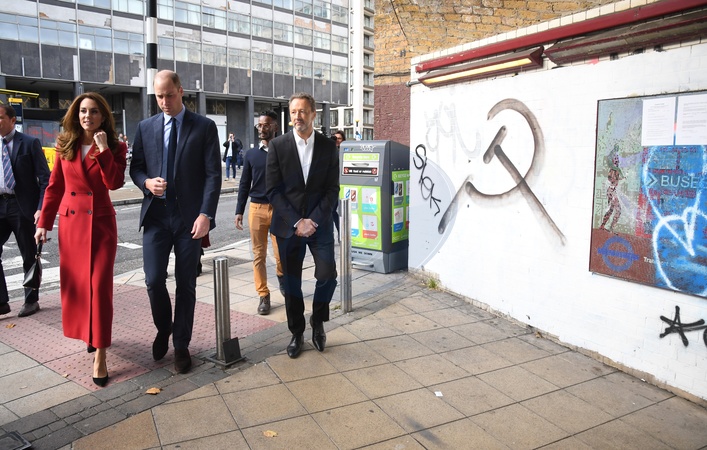 Ksiezna Kate w czerwonym plaszczu i ksiaze William podczas oficjalnego wyjscia