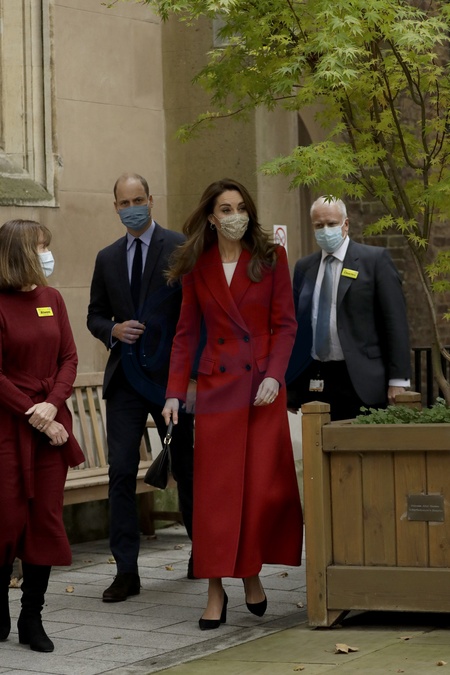 Ksiezna Kate w czerwonym plaszczu i ksiaze William podczas oficjalnego wyjscia