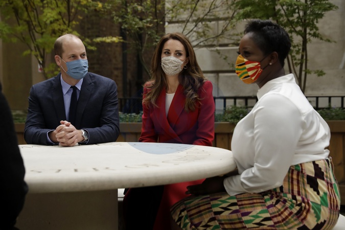 Ksiezna Kate w czerwonym plaszczu i ksiaze William podczas oficjalnego wyjscia