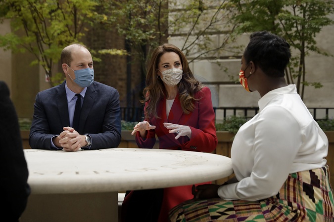 Ksiezna Kate w czerwonym plaszczu i ksiaze William podczas oficjalnego wyjscia