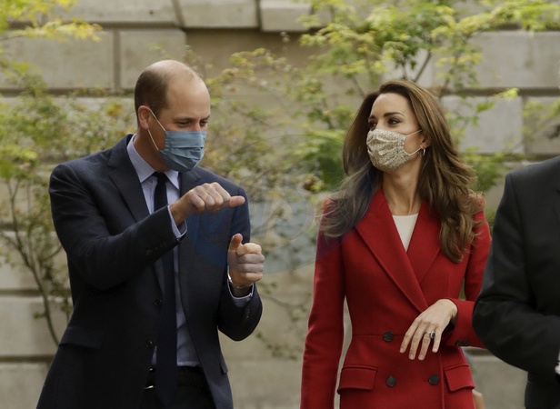 Ksiezna Kate w czerwonym plaszczu i ksiaze William podczas oficjalnego wyjscia