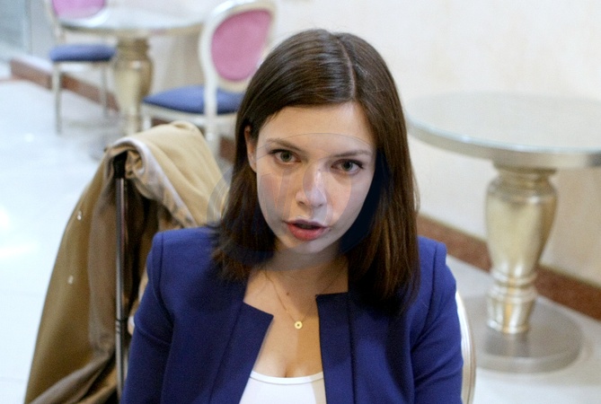 Karolina Pawlowska udziela wywiadu korespondentce Ukrainskiej Narodowej Agencji Informacyjnej Ukrinform z Kijowa