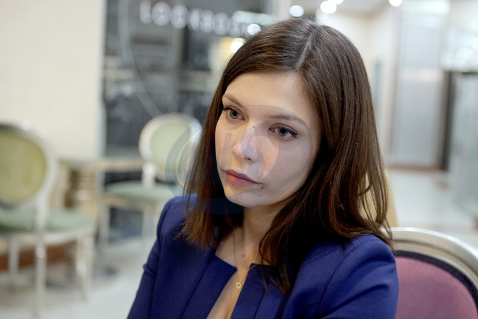 Karolina Pawlowska udziela wywiadu korespondentce Ukrainskiej Narodowej Agencji Informacyjnej Ukrinform z Kijowa