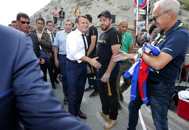 Emmanuel Macron w Tourmalet podczas Tour de France 2019