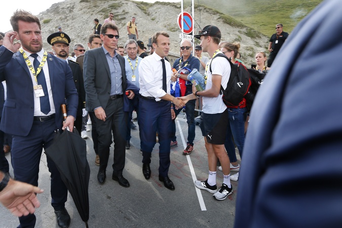 Emmanuel Macron w Tourmalet podczas Tour de France 2019